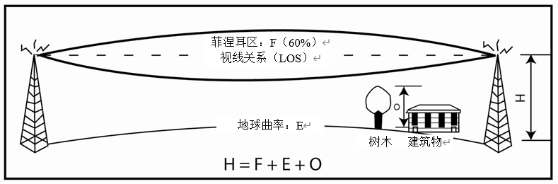 2)菲涅耳区:这是一种电磁现象,光或无线电信号在其路径附近被固体物体衍射或弯曲。请参见表1,其中显示了60%的菲涅耳区值(在路径上接受清除)。将此添加到地球曲率高度。