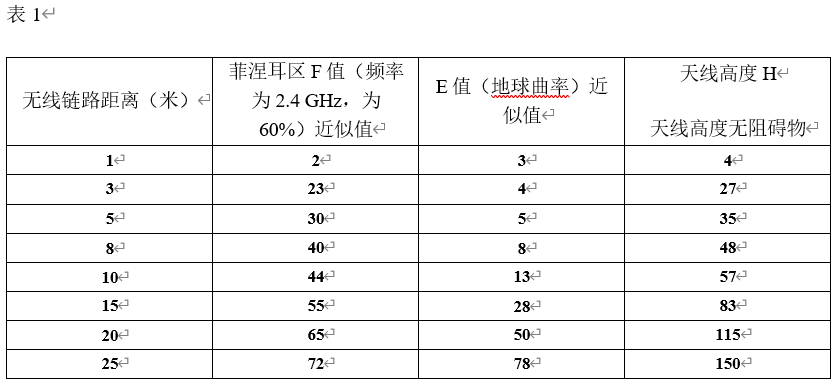 1)站点之间的距离:由于地球的曲率,链路越长,需要的天线就越高。(此关系不成比例)参见表1。