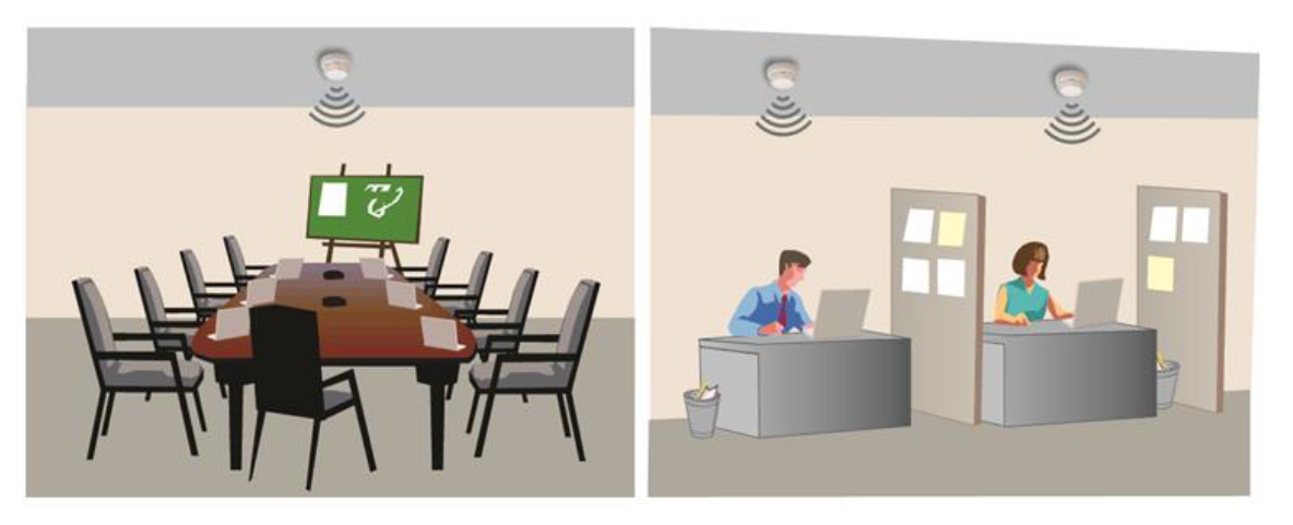 为了向内部办公空间提供无线覆盖,使用可提供360° 无线覆盖的全向天线。通常使用的天线类型是吸顶全向天线。吸顶全向天线的天线增益辐射方向图为环形形状,具有良好的垂直和水平覆盖范围,可与笔记本电脑、打印机、平板电脑和智能手机等在内的WiFi设备建立连接。