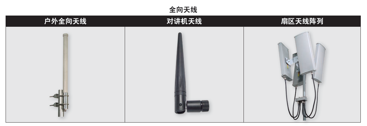 全向天线的类型包括通常在访问接入点和路由器上发现的对讲机天线,在室外发现的全向天线以及在蜂窝塔上使用的天线阵列。