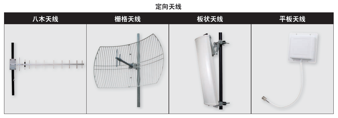 与辐射方向图类似的是,车辆前照灯是如何照亮道路的。定向天线的类型包括八木天线、栅格抛物面天线、板状天线和平板天线。