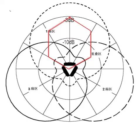 每个扇区的天线在最大辐射方向偏离±60º时到达覆盖边缘,需要切换到相邻扇区工作。在±60º的切换角域,方向图电平应该有一个合理的下降。电平下降太多时,在切换角域附近容易引起覆盖盲区掉话;电平下降太少时,在切换角域附近覆盖产生重叠,导致相邻扇区干扰增加。
