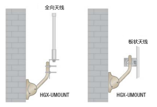 - HGX-UMOUNT可用于将天线安装于建筑物的侧壁、屋顶女墙或屋檐下。